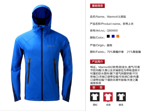 M2科技复合结构防风防泼水透气保暖性。天猫商城此款吊牌价为1149元,注册会员使用450元店铺券,此款到手价为699元包邮,尺码较全, 防风排汗,质轻方便,3色可选。