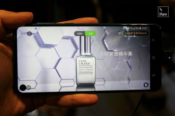 但和三星发布 Galaxy A8s 不同,荣耀这次只是通过 PPT 和原型机展示了钻孔屏技术,并没有发布新机。但即便只是技术展示,荣耀这项新技术也有一个倍优雅的名字,叫做——「魅眼全视屏」。