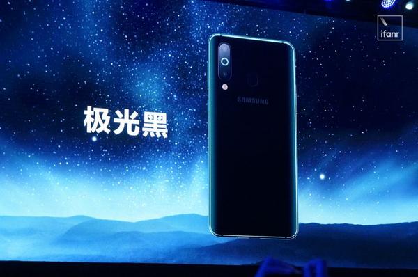 背部的颜色是 Galaxy A8s 的亮点设计,除了之前曝光过的银黑渐变色,官方称之为「外星银」,我在现场还看到了「极光黑」和「精灵蓝」。