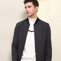 HODO红豆男装春秋季男士夹克轻时尚罗纹领条纹气质休闲夹克男外套