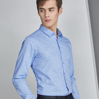 HODO红豆春秋长袖衬衫印花休闲简洁小尖领中青年轻商务衬衫男